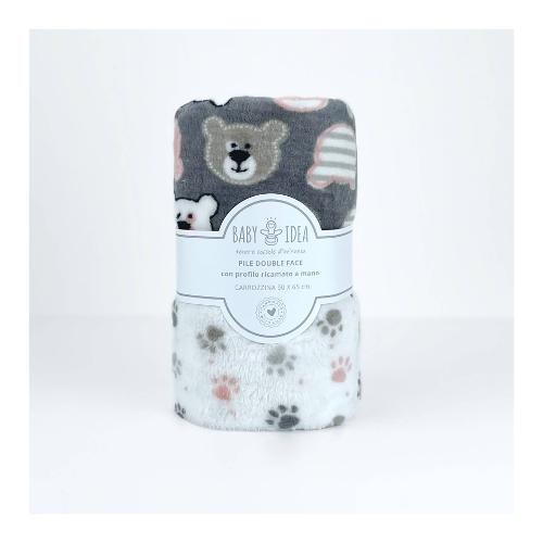Baby Idea Coperta carrozzina Pile 100% poliestere double face (90x65cm) Orso grigio PFCO