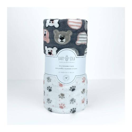 Baby Idea Coperta lettino pile 100% poliestere double face (135x110cm) Orso grigio PFLO