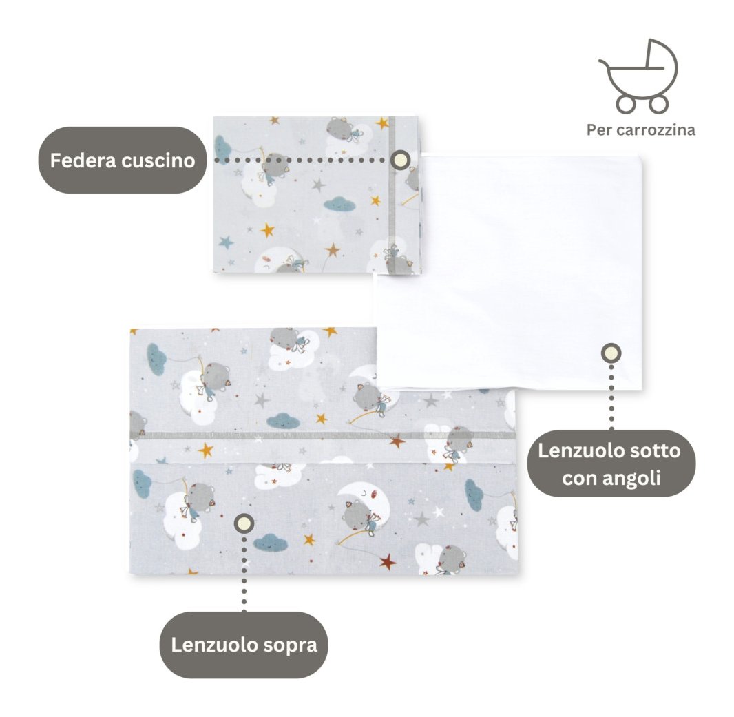 Set lenzuola culla 3 pz Fantasia grigio LCFG