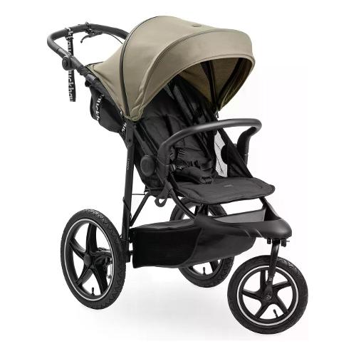 Solido passeggino per quasi ogni terreno, 3 ruote pneumatiche XL ammortizzate, sospensioni posteriori regolabili e ruota anteriore, sia in città che in campagna! In salita e in discesa: con il freno a mano controllerai al meglio la velocità. E il manubrio in gomma regolabile in altezza con cinturino da polso aderisce bene alla mano.