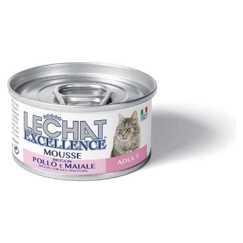 Le chat excellence mousse gatto adulto ricco in pollo e maiale è un alimento completo per gatti adulti. Una soffice e delicata emulsione che esalta l’appetibilità del prodotto. Ricetta formulata con una combinazione bilanciata di rame e zinco per supportare le naturali difese della pelle. Senza coloranti e conservanti aggiunti