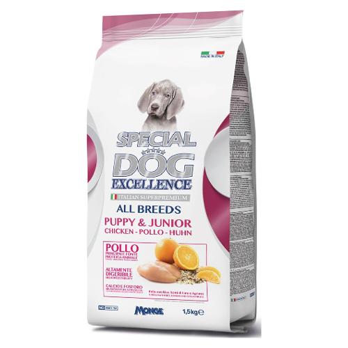 Special dog excellence all breeds puppy & junior pollo è un alimento completo per cuccioli con riso, semi di lino e agrumi. Special dog excellence è la linea di prodotti pensata per offrire al tuo cane solo il meglio. Un’alimentazione completa formulata con ingredienti che garantiscono ogni giorno il benessere dei nostri amici a quattro zampe. Formulazioni con materie prime di qualità come i semi di lino, fonte di acidi grassi omega-3 possono rappresentare un valido supporto per il benessere della cute e del pelo e gli agrumi, fonte di vitamina c, per supportare la funzione fisiologica del sistema immunitario. Formulato con un bilanciato rapporto calcio/fosforo per il supporto dello sviluppo delle cartilagini articolari e del sistema scheletrico