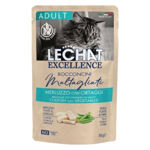 Le chat excellence gatto adulto merluzzo con ortaggiè un alimento completo e bilanciato per gatti adulti. Bocconcini maltagliati in salsa formulati pensando al benessere dei gatti, grazie alla selezione di fonti alternative di carboidrati non derivati dai cereali, come piselli, e con merluzzo, fonte di proteine per supportare la massa magra. Made in italy, no cruelty test e senza coloranti e conservanti artificiali aggiunti.
