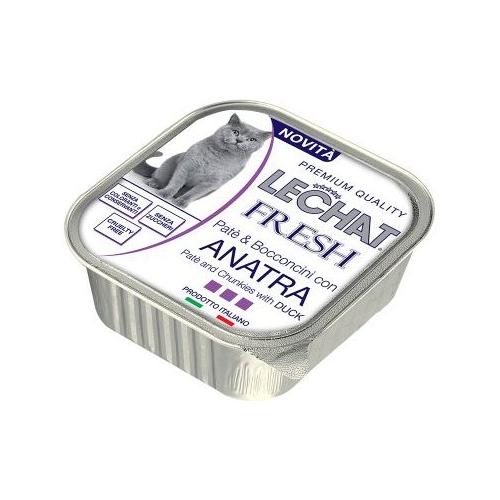 Lechat fresh è una linea di prodotti pensata per offrire al tuo gatto solo il meglio. Una linea di alimenti formulati con ingredienti di alta qualità, selezionati per soddisfare le esigenze nutrizionali dei vostri animali. Lechat fresh con anatra è un alimento completo, formulato con carne fresca che unisce la cremosità del paté cotto al vapore con il sapore dei bocconcini cotti al forno. Appositamente studiato per offrire una nutrizione bilanciata con l’addizione di vitamine a-d3-e. Senza l’aggiunta di coloranti, conservanti e zuccheri. Made in italy e no cruelty test.