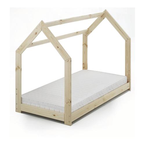 L lettino senza barriere, ispirato alla filosofia pedagogica montessoriana, è stato realizzato in legno d’abete e disponibile in variante naturale o laccato bianco.