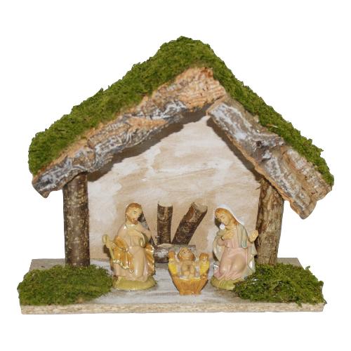 Natività con capanna (25x13x21cm) Legno, Sughero, Muschio 06887 3S