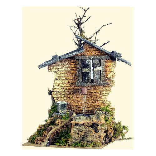 Fontana con acqua (14x20x25cm) Legno, Sughero, Muschio, Cartone 11226