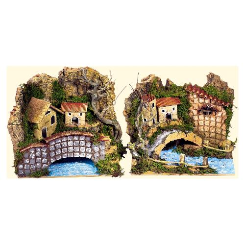 Paesaggio su fiume (20x14x17cm) Legno, Sughero, Muschio, Cartone Assortito 11414