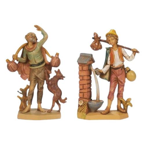 Pastore doppio (2 modelli). Statua adatta per la natività in un presepe di 16 cm. Realizzato in pvc con effetto legno