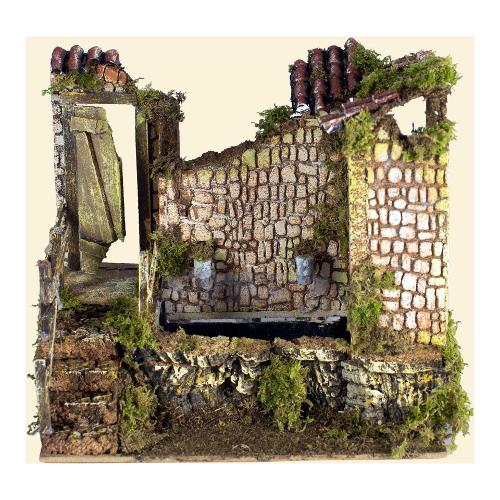 Fontana 2 getti con pompa 220 v e scala con porta 18x20x15 cm