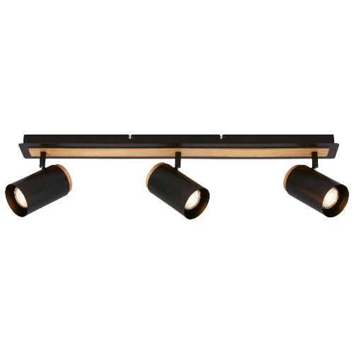 Briloner Set faretti spot DUTA Nero e Legno (80x8x14,4cm) 2359035 3 luci - GU10 - Max 30W