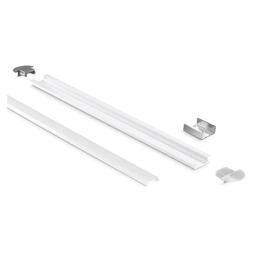 Profilo in alluminio da incasso per strisce LED lungo 2 m con diffusore opale ad incastro. Finitura bianco. Accessori inclusi