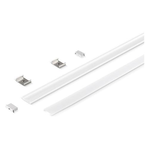 Profilo in alluminio da superficie per strisce LED lungo 2 m con diffusore opale ad incastro. Finitura bianco. Accessori inclusi