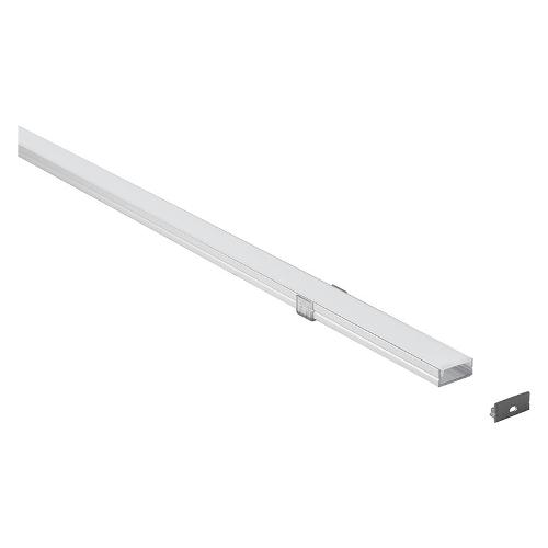 Profilo in alluminio da superficie per strisce LED lungo 2 m con diffusore opale ad incastro. Finitura grigio alluminio. Accessori inclusi