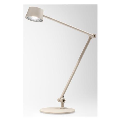 Lampada da tavolo dimmerabile ed orientabile. Accensione e dimmerazione a pulsante presente sulla testa della lampada. Diffusore in metacrilato semi trasparente. Modulo LED e trasformatore incluso