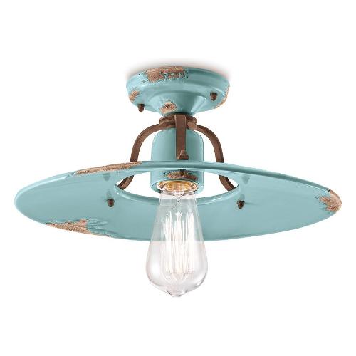 Ferroluce Plafoniera COUNTRY Vintage azzurro (15x40cm) C1445 VIA 1 luce - E27 - Max 77W