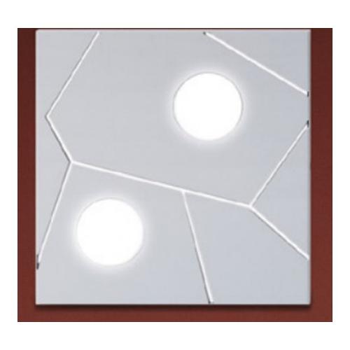 Lampada di forma quadrata caratterizzata al suo interno da luci tonde e linee luminose. Studiata in varie misure si può comporre per realizzare divertenti giochi luminosi