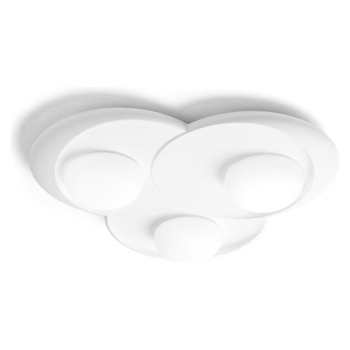 Lampada da soffitto in gesso a 3 luci con diffusore opalino in vetro. Verniciabile