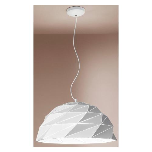 Sospensione con paralume piegato e lavorato con taglio laser per permettere l' illuminazione anche della parte superiore