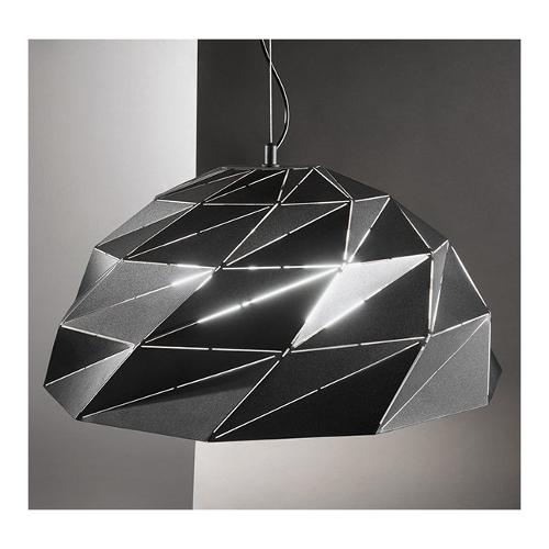 Sospensione con paralume piegato e lavorato con taglio laser per permettere l' illuminazione anche della parte superiore