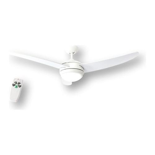Ventilatore metallo finitura bianco, 3 pale con kit luce in vetro 2xE27 max 40W.Telecomando a onde radio incluso.