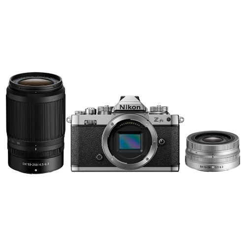 Passa dal grandangolo al teleobiettivo con questo kit dual zoom. Include la fotocamera mirrorless Z fc e due obiettivi zoom con meccanismo di ritrazione.