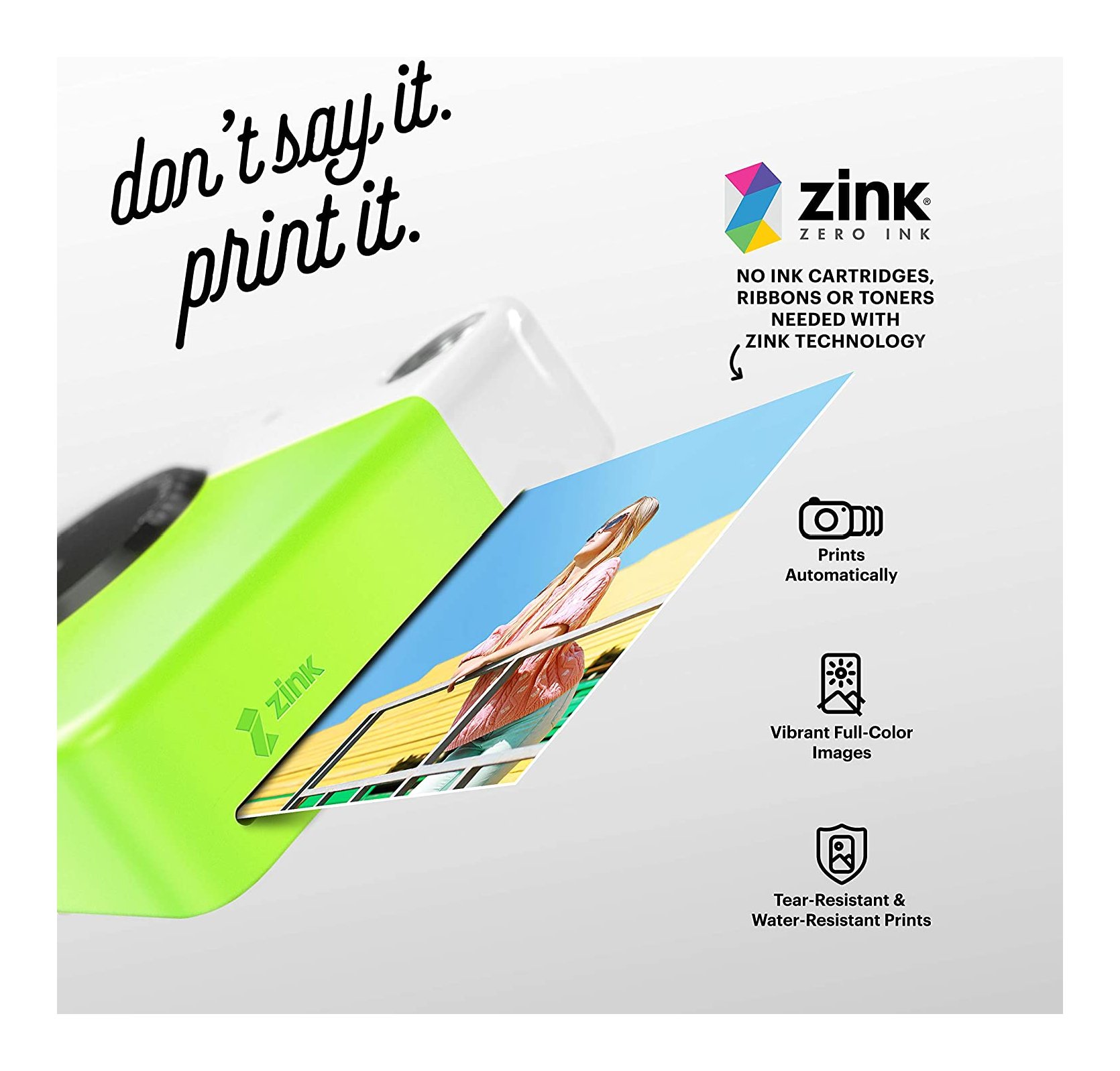 Kodak printomatic stampa istantaneamente e in automatico fotografie di alta qualità: basta inquadrare e scattare! La fotocamera funziona con la carta ZINK di Kodak senza utilizzo di cartucce di inchiostro. Le foto vengono stampate su carta retroadesiva che non si rovina nel tempo e resiste all’acqua.