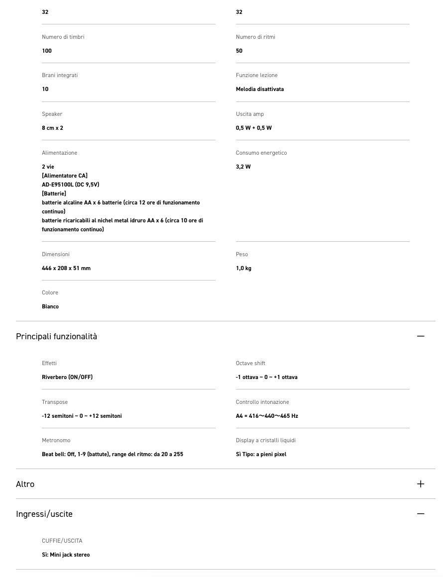 Facile da utilizzare e divertente da suonare: la scelta perfetta per la tua prima tastiera. Alimentazione tramite batterie o alimentatore AC (batterie/alimentatore CA venduti separatamente)