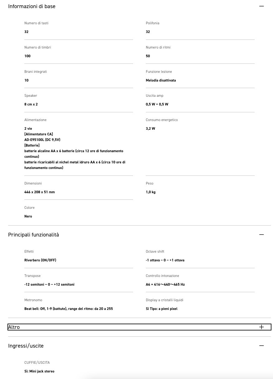 Facile da utilizzare e divertente da suonare: la scelta perfetta per la tua prima tastiera. Alimentazione tramite batterie o alimentatore AC (batterie/alimentatore CA venduti separatamente)