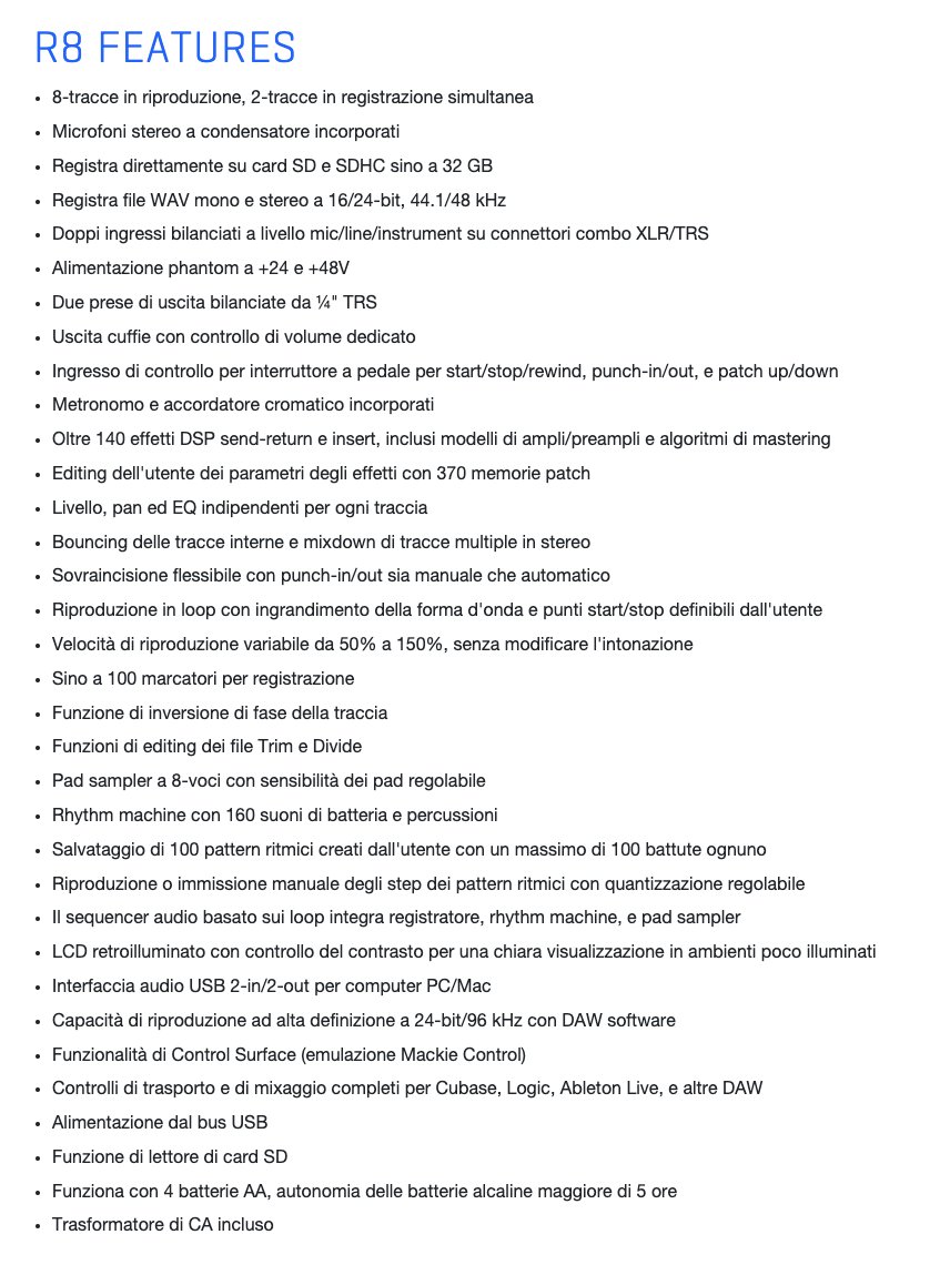 Zoom R8 combina diversi strumenti di produzione audio in un unico dispositivo compatto. Oltre ad essere un registratore a 8 tracce, è un pad sampler e una drum machine, e può anche funzionare come superficie di controllo per DAW e come interfaccia audio per computer. Funzionalità avanzate come i microfoni stereo a condensatore incorporati, doppi ingressi a livello microfonico, di linea e strumentale, effetti DSP interni e accordatore cromatico completano la lista delle funzioni, rendendo R8 una scelta eccellente per chi registra a casa e in movimento.