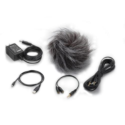 H4n Pro Kit Di Accessori per DSLR. La confezione contiene antivento in pelliccia sintetica, cavo splitter, cavo attenuatore, cavo USB e alimentatore AD-14.
