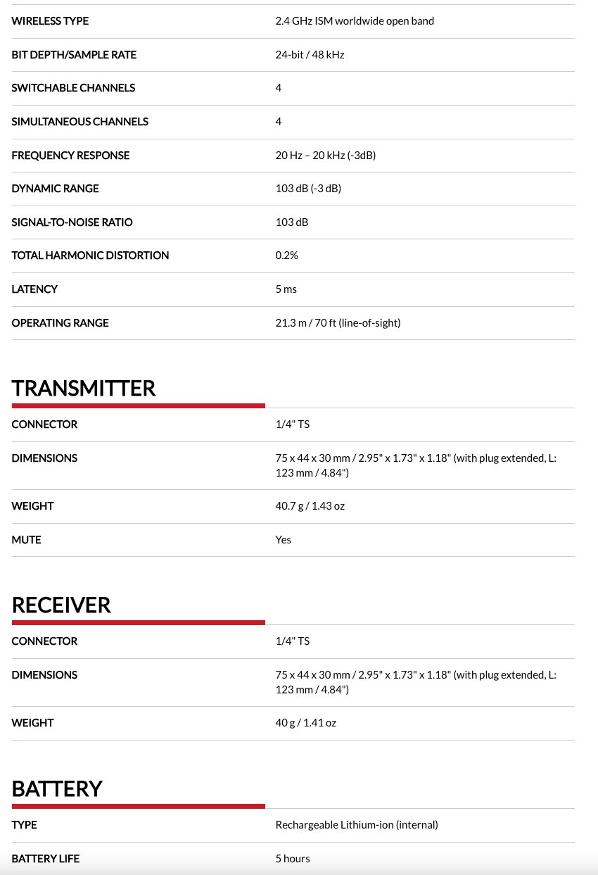 Il sistema è composto da un'unità trasmittente, che si collega alla sorgente audio (in genere una chitarra elettrica o un basso); e un ricevitore, che è collegato a un amplificatore, effetto a pedale/pedaliera, DI box o interfaccia audio.
