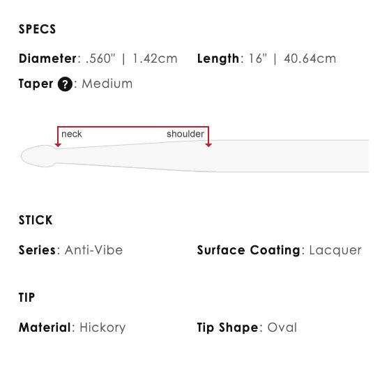 Le bacchette Zildjian Anti-Vibe contengono una caratteristica brevettata che riduce efficacemente le vibrazioni.