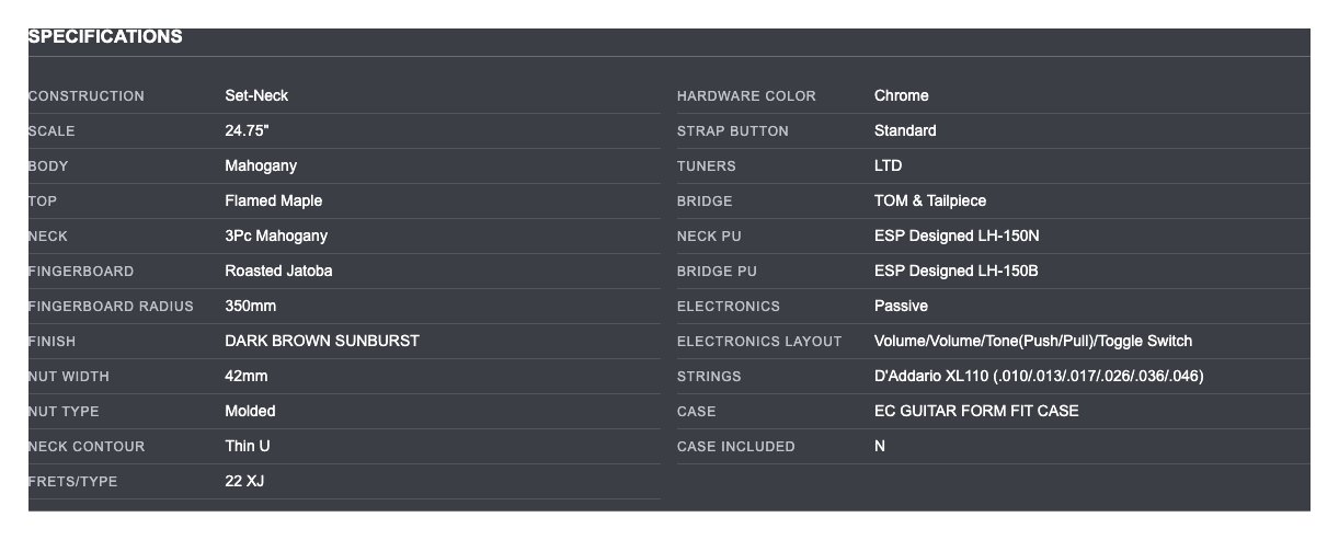 Una forma classica eccellente per tutti gli stili e generi musicali, l'EC-256FM è disponibile in molteplici finiture e offre caratteristiche che normalmente si associano alle chitarre di fascia alta, come un top in acero fiammato, rilegatura su corpo, manico e paletta, e costruzione a collo fisso per un accesso facile e veloce ai tasti più alti. L'EC-256FM presenta anche un corpo in mogano, un comodo manico in mogano sottile a forma di U in tre pezzi e una tastiera in jatoba arrostito con intarsi e 22 tasti extra-jumbo. Questa chitarra presenta i nostri acclamati pickup humbucking LH-150 progettati da ESP che offrono un suono eccezionale per tutti i generi musicali e la flessibilità del tono della divisione della bobina controllata da un interruttore push-pull sulla manopola del tono.