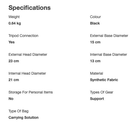Sacca imbottita per treppiedi. Leggermente rastremata per adattarsi meglio al treppiedi con testa montata. La parte più larga della sacca accoglie la testa senza dover smontare le leve.