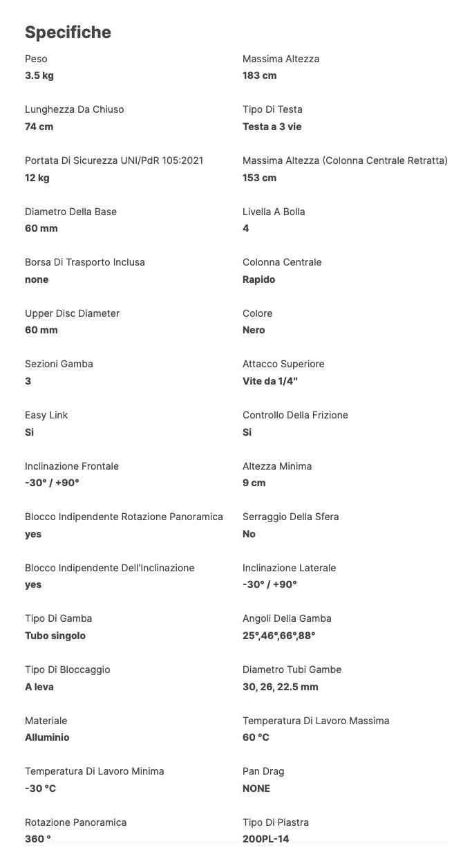 Treppiede con Testa 15 Kg SERIE 055 Kit a 3 Vie Black MK055XPRO3 3W