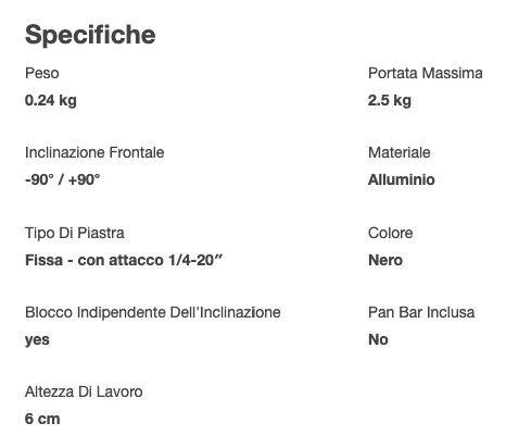 Semplice testa inclinabile che consente di ruotare di 90° la telecamera su un monopiede per ottenere il formato verticale o orizzontale.