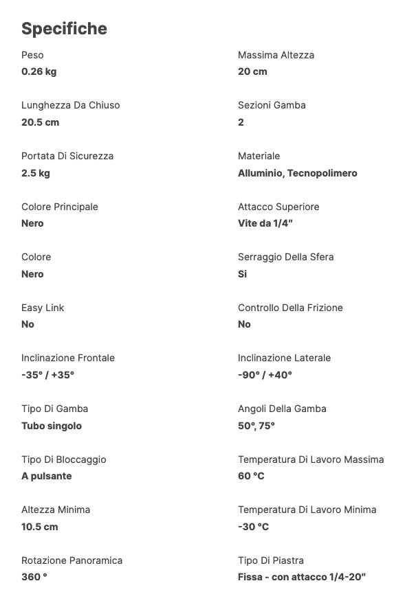 Mini Treppiede 2,5 Kg PIXI Da Tavolo a Due Sezioni Black MTPIXIEVO BK