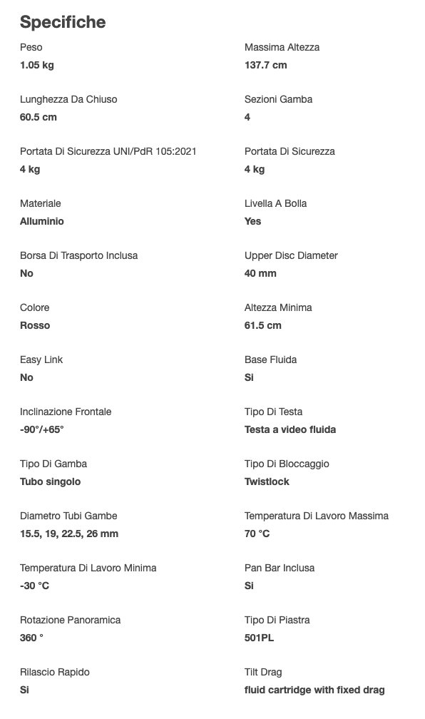 Monopiede con Testa 4 Kg ELEMENT MII Kit Video Black e Red MVMELMIIA4LIVE
