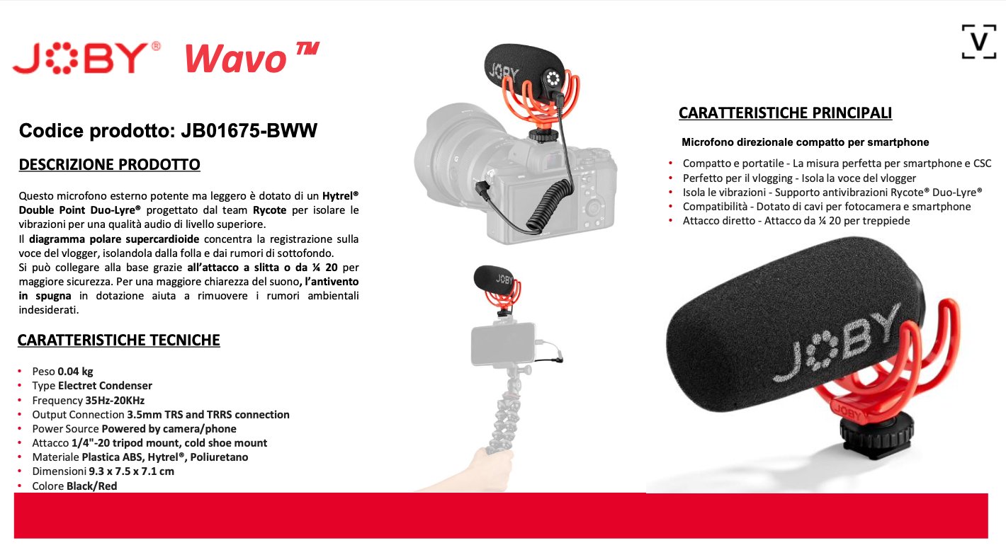 Progettato per mobile content creator in movimento che hanno bisogno di un microfono compatto. Dotato sia di un cavo per smartphone (TRRS) che di uno per fotocamera (TRS), è un microfono di prima scelta per i vlogger. Attacco per treppiede.