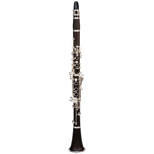 Clarinetto in SI bemolle. Corpo in gomma dura satinata con chiavi nichelate. Ammortizzamento a Pistoni. 17 chiavi e 6 anelli. Accessori inclusi: bocchino con morsetto e coperchio, grasso per il tappo, panno per la pulizia e solida custodia.