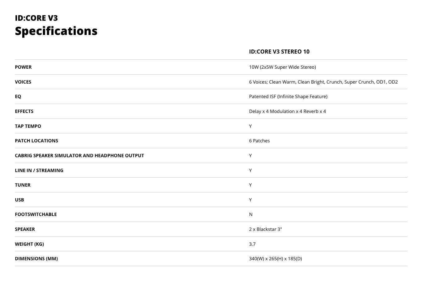 Amplificatore chitarra ID CORE V3 Stereo 10 Black 10W