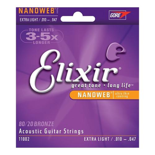 Le corde in bronzo Elixir Acoustic 80/20 con rivestimento NANOWEB offrono un tono brillante e vivace insieme a una durata del suono estesa che i musicisti si aspettano dalle corde Elixir. Scalatura Extra Light: 010, 014, 023, 030, 039, 047