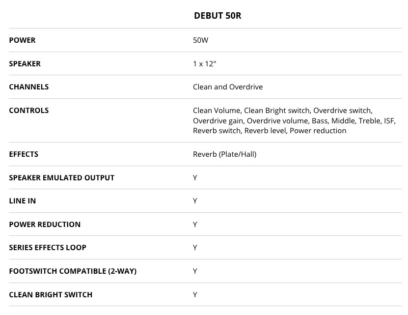 Questo amplificatore versatile è perfetto per i chitarristi di tutti i livelli, che si tratti di suonare in una camera da letto, esercitarsi in una piccola stanza o esibirsi sul palco. Caratterizzato da autentici toni valvolari tutti progettati utilizzando la tecnologia MOSFET, il Debut 50R ti farà suonare come un professionista fin dall'inizio.
