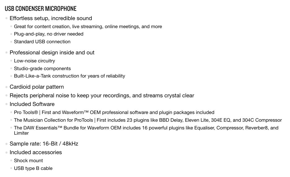 Mackie Microfono USB ELEMENT SERIES Em 91Cu Black e Silver