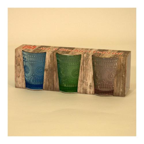 Amicasa Set bicchieri Acqua 3 pz Vetro SPRING Blu, Verde e Rosa Art 1
