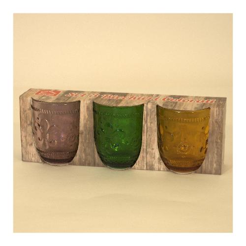 Amicasa Set bicchieri Acqua 3 pz Vetro SUMMER Rosa, Verde e Giallo Art 4