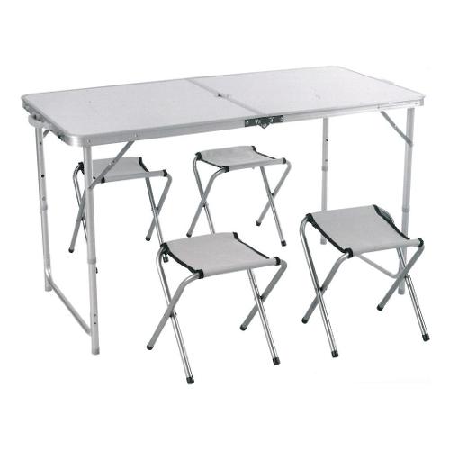 Kit valigetta picnic piano tavolo 120x60 cm con 4 sgabelli Bianco CHO 8813