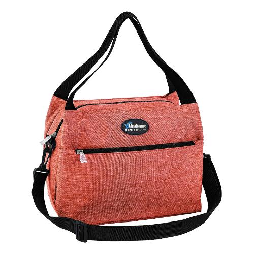 Borsa termica dal design moderno ed essenziale dotata di maniglie e pratica tracolla regolabile e munita di una comoda tasca frontale richiudibile con una zip.
