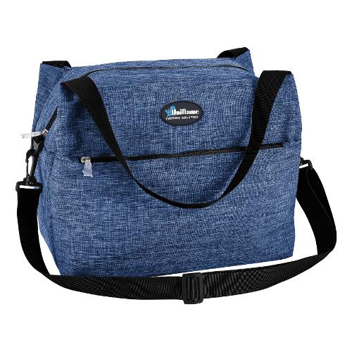 Borsa termica dal design moderno ed essenziale dotata di maniglie e pratica tracolla regolabile e munita di una comoda tasca frontale richiudibile con una zip.